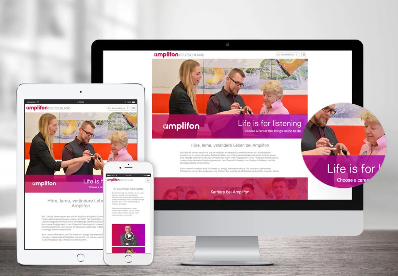 Im Rahmen eines internationalen Relaunches der Marke Amplifon war auch die Ländergesellschaft Amplifon Deutschland GmbH mit ihren rund 400 Fachgeschäften und rund 1.300 Mitarbeiterinnen und Mitarbeitern auf der Suche nach einem kompetenten Partner für die Implementierung eines Bewerbermanagement-Systems sowie für die Neuausrichtung und den Aufbau einer Personalmarketing-Strategie.